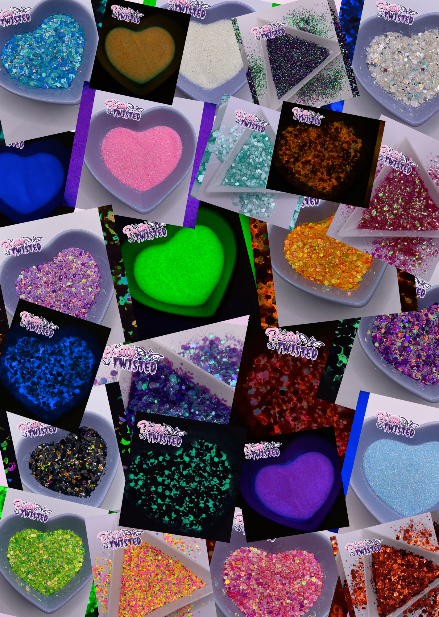 You can get your hands on our glitter checklist. To Download chunky glitter checklist CLICK HERE and to download Fine glitters, Bubble glitter, flakes and shapes CLICK HERE